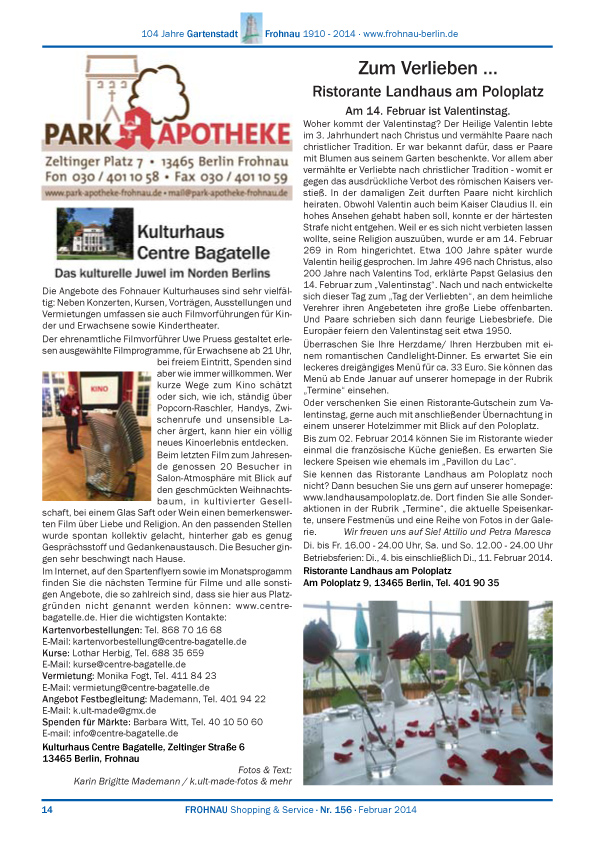 Dies ist die HTML-Version von Frohnau Nr. 156 Februar 2014 Seite 14