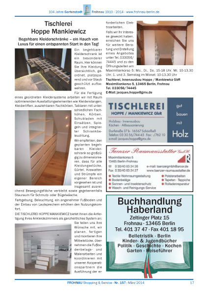 Dies ist die HTML-Version von Frohnau Nr. 157 März 2014 Seite 17