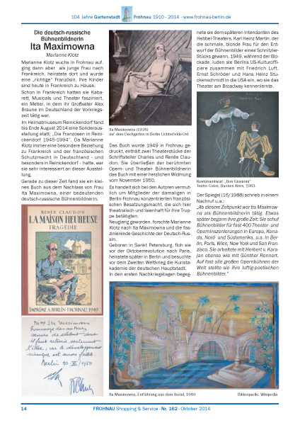 Dies ist die HTML-Version von Frohnau Nr. 162 Oktober 2014 Seite 14
