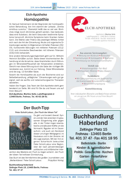 Dies ist die HTML-Version von Frohnau Nr. 162 Oktober 2014 Seite 15