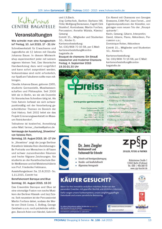Dies ist die HTML-Version von Frohnau Nr. 168 Juli 2015 Seite 13