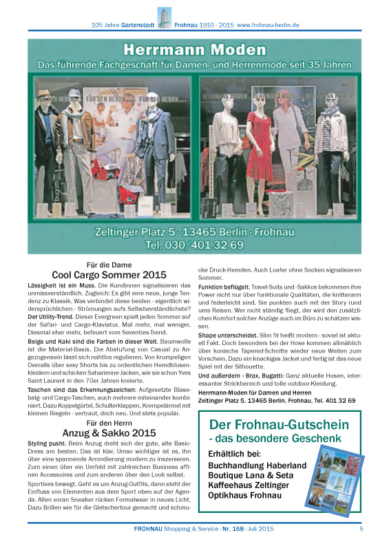 Dies ist die HTML-Version von Frohnau Nr. 168 Juli 2015 Seite 5