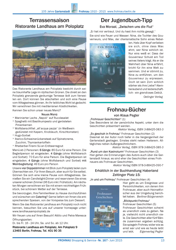 Dies ist die HTML-Version von Frohnau Nr. 167 Juni 2015 Seite 13