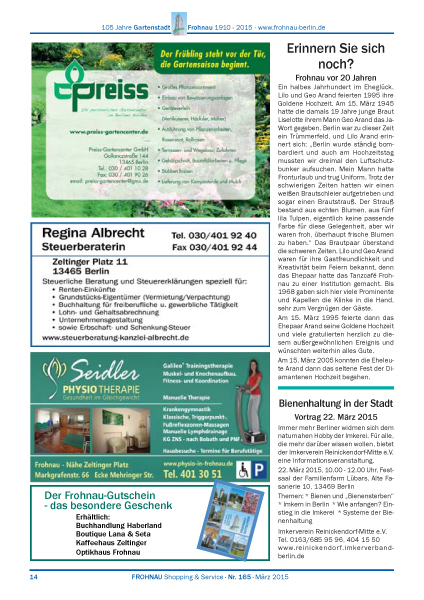 Dies ist die HTML-Version von Frohnau Nr. 165 März 2015 Seite 14