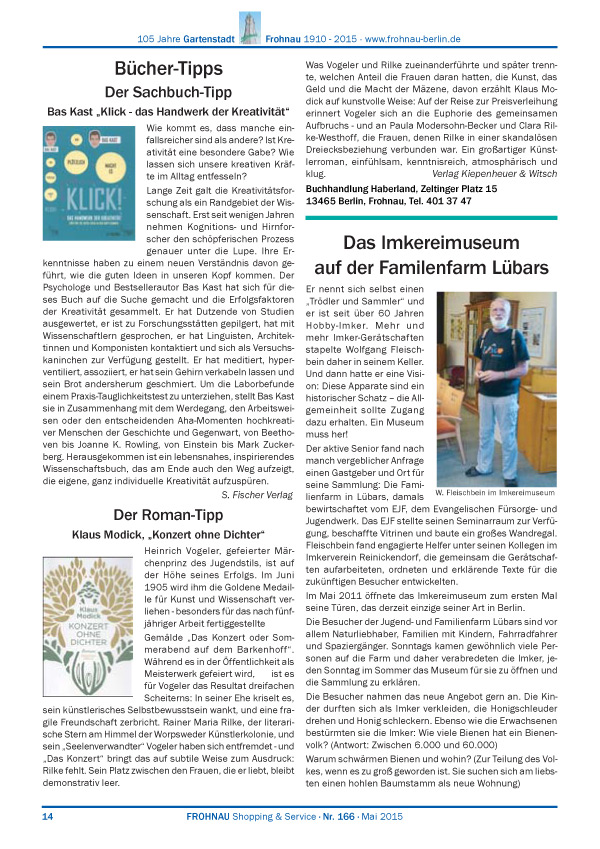 Dies ist die HTML-Version von Frohnau Nr. 166 Mai 2015 Seite 14